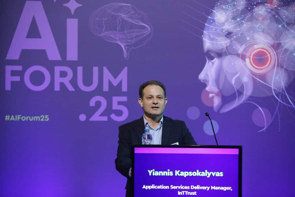 Ο κ. Γιάννης Καψοκαλύβας, Application Services Delivery Manager, InTTrust, στην ομιλία του με θέμα "Applied Intelligence
