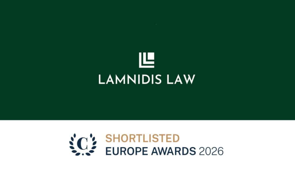 H Lamnidis Law προτάθηκε για τον τίτλο «Ελλάδα – Εταιρεία της Χρονιάς» στα Βραβεία Chambers Europe 2026. Τα Βραβεία Chambers Europe συγκαταλέγονται μεταξύ των κορυφαίων events για τον επαγγελματικό νομικό χώρο, αναγνωρίζοντας εταιρείες που ξεχωρίζουν για την αριστεία, τον αντίκτυπο και την ηγετική τους θέση στην αγορά. Αυτή η αναγνώριση συμπίπτει με την πέμπτη επέτειο […]